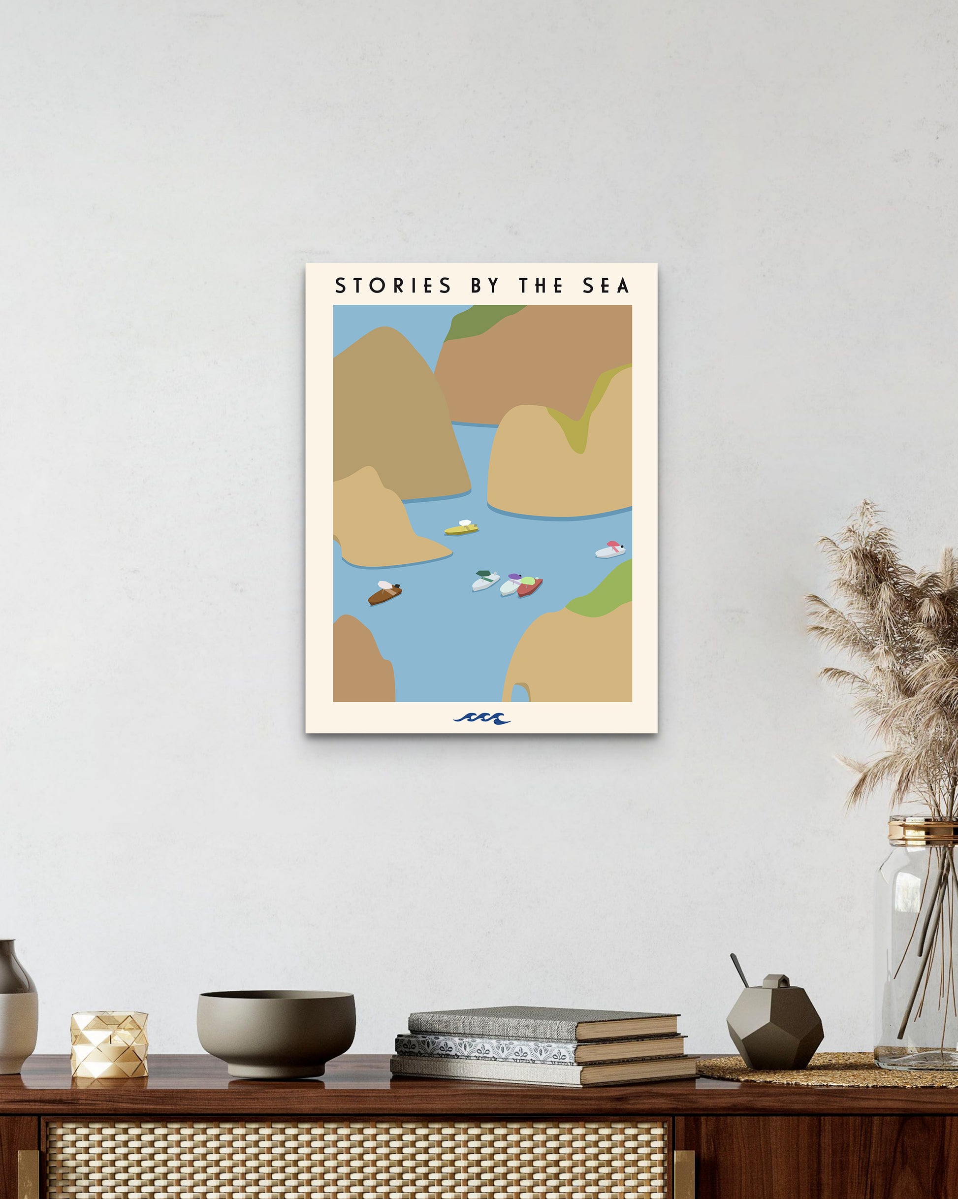 The Stories By The Sea collection is offered in medium size only. The prints have been sized specifically to fit with common and readily available framing sizes, making it possible to purchase a frame directly from your local furniture or design store (frame not included).